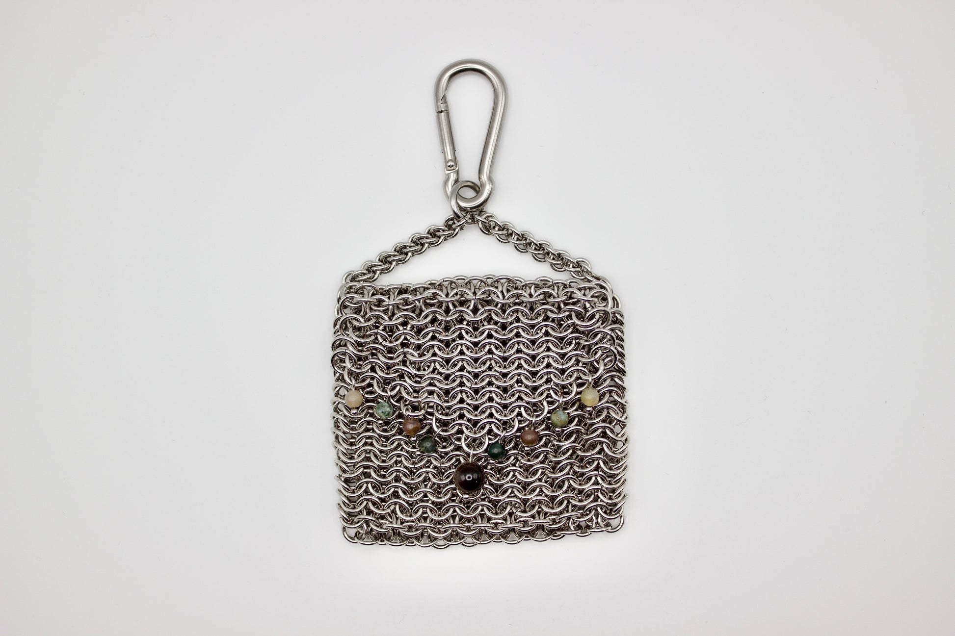 Materials: stainless steel jump rings and carabiner, coffee jade, agate