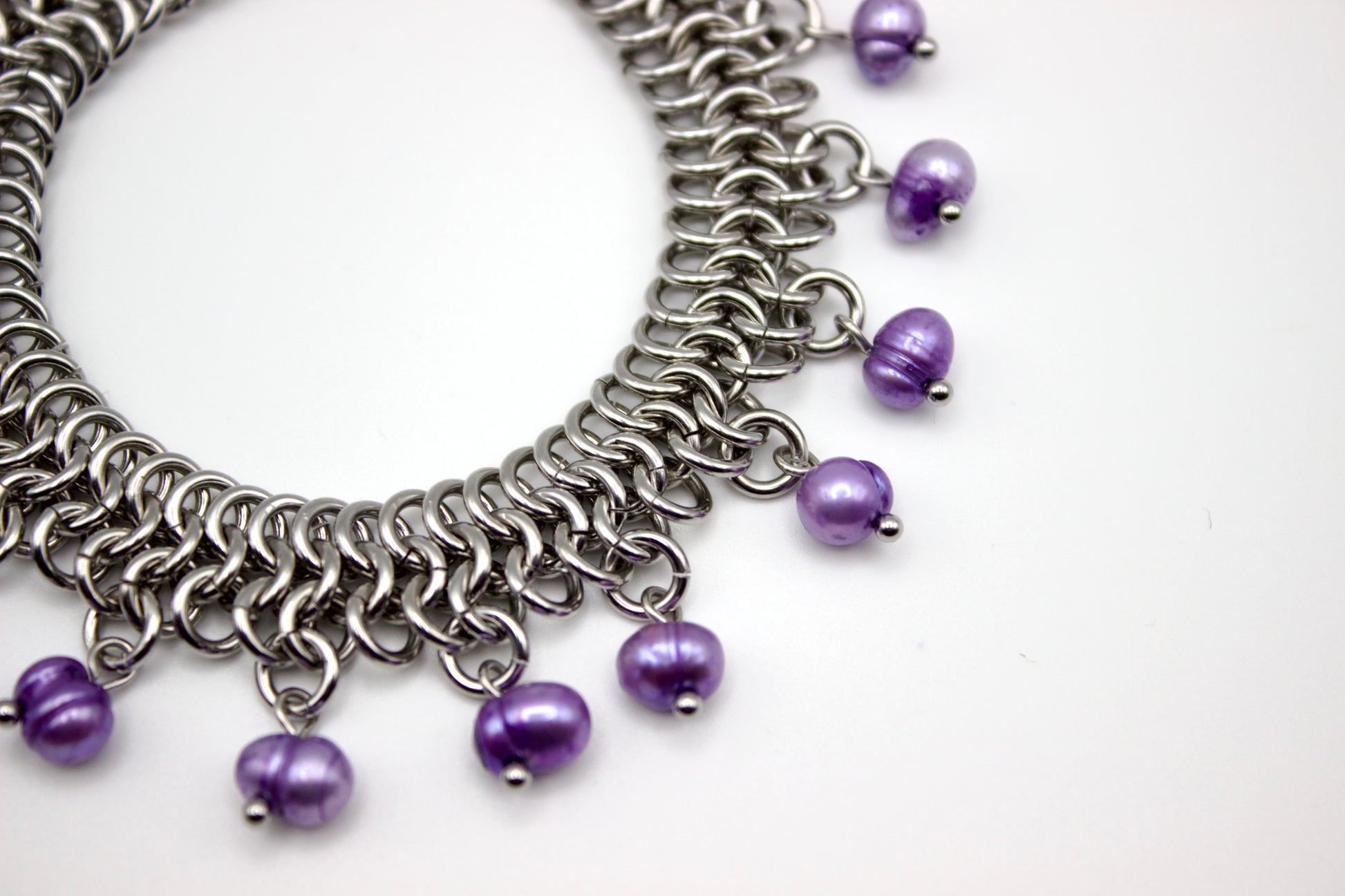 Materials: stainless steel jump rings and findings, freshwater pearls