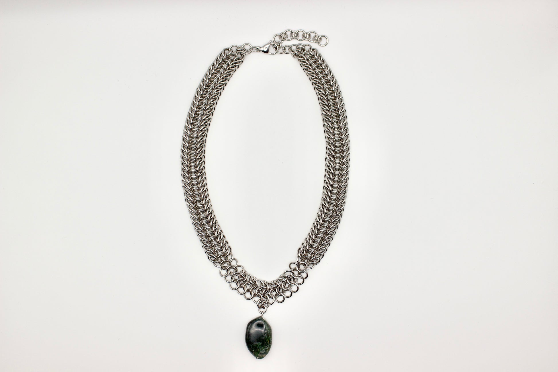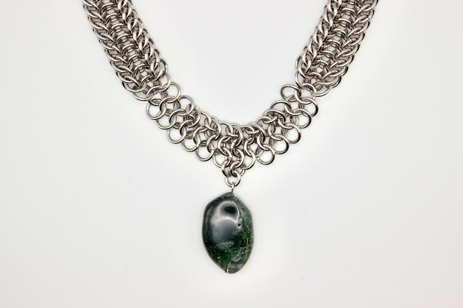 Materials: stainless steel jump rings and findings, moss agate